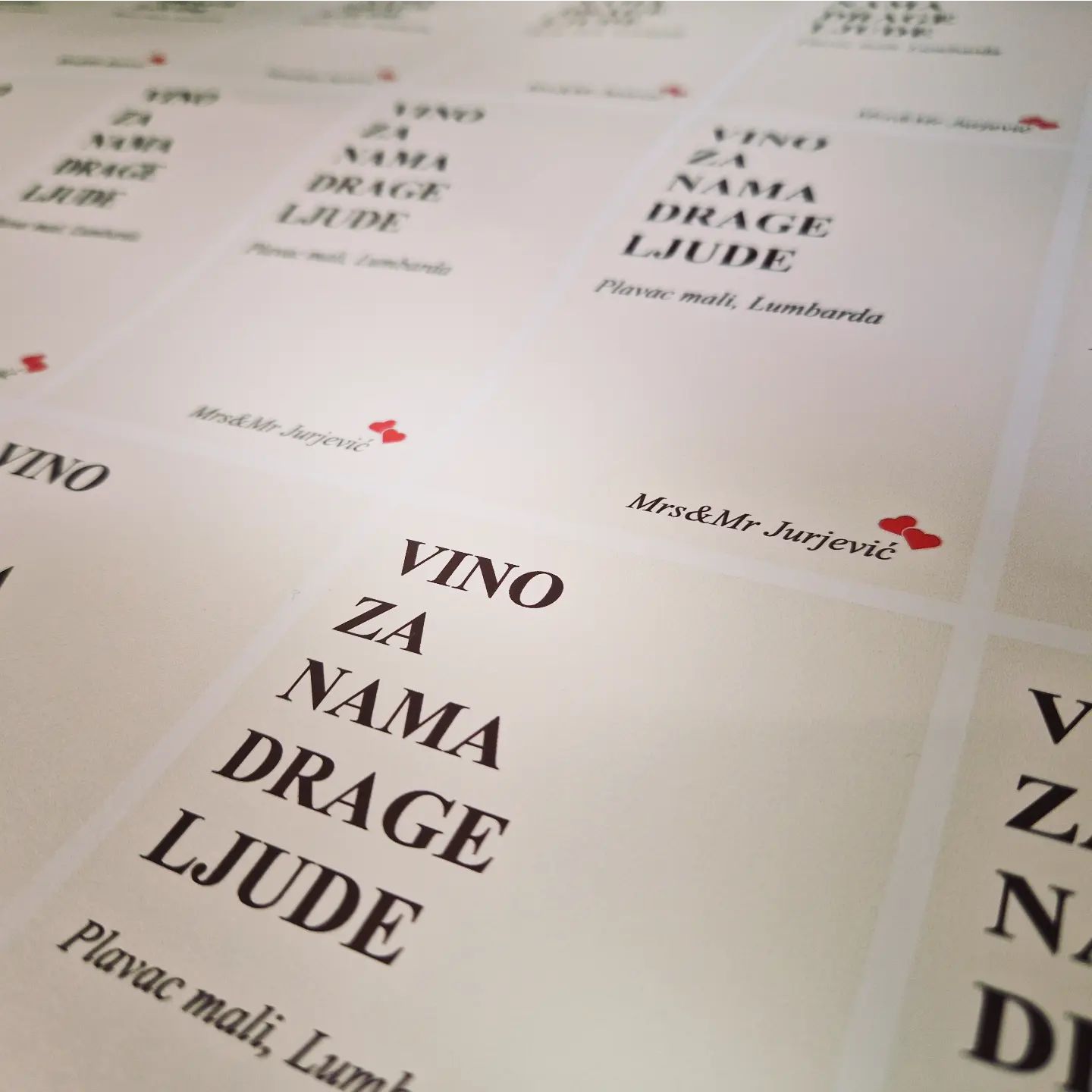 • Naljepnice za svadbene proizvode (vino, rakija, tabla dobrodoslice)